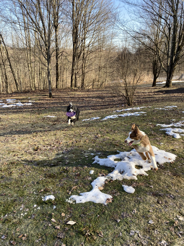 Thanks! Benny the border is an amazing animal. The new Aussie girl is super affectionate, afraid of men, not house-trained, and very active, a lovely work in progress. She came with the name Noli which isn't great for corrections. She had a hard time of it with her previous assignment, but we'll get her sorted out. Working herds, flocks, or humans she's a heeler vs Benny who is a header. She loops around at your heel when hiking / biking like my Aussie Merlin used to which brings back fond memories of a great dog long passed.