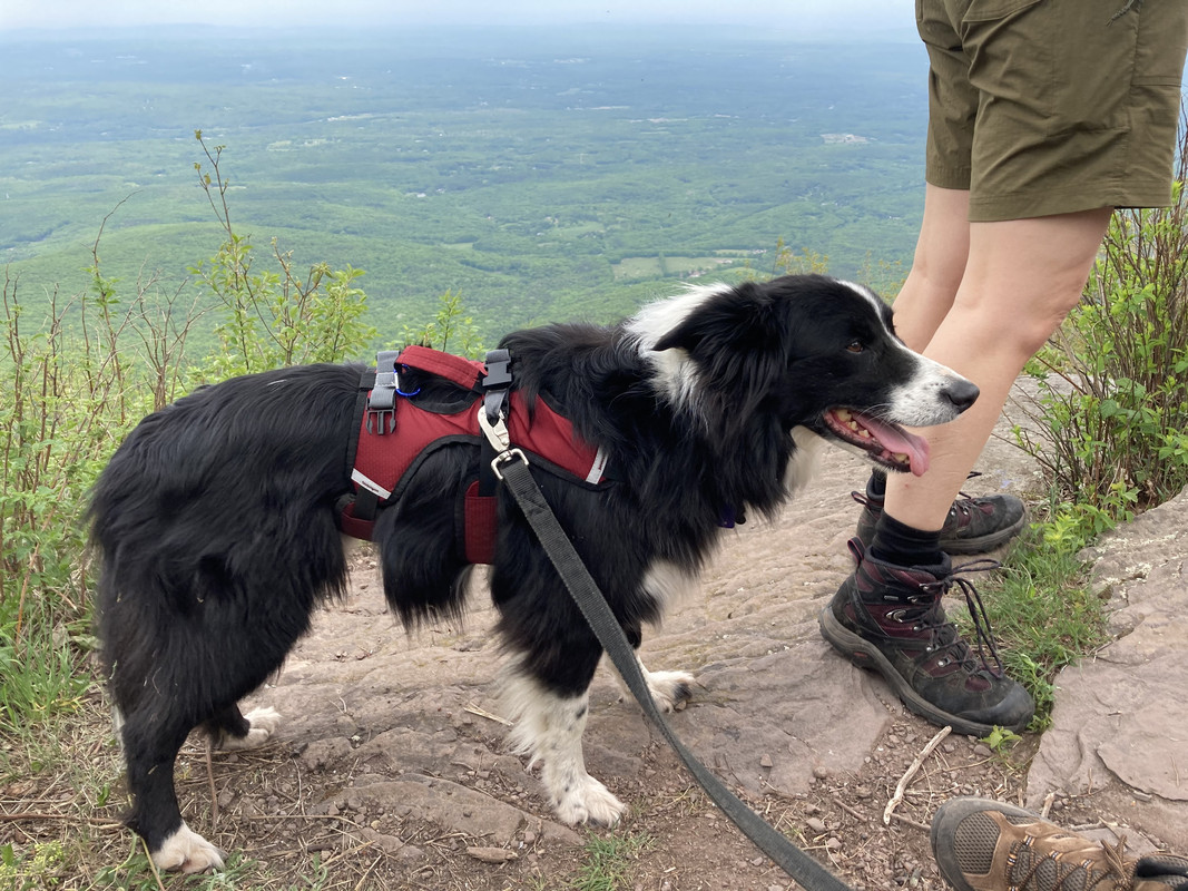 They are harnesses although Benny's has panniers we can clip on so he can carry his own food and water. Noli's has a pouch for the shit bags.