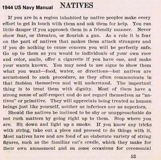 And on page 53 of the Navy manual (as you never know where you'll swim ashore) how to con the lowly heathens you might encounter and use then to your advantage.