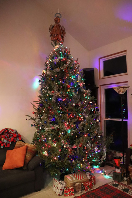 This year, long before I even conceived the idea to get the biggest tree I could find.... I determined I wanted to make an Angle to top it, just because. Pologirl wanted to revisit the family project idea. turns out we needed to make one anyway because huuuuuge tree....... so tonight we did. We dug out the remains of Steampunk Angel and turned them into Steampunk Angle. It is making me very amused and happy. Also, it started snowing around midnight so we have a white christmas for our floridian who has never seen snow before.