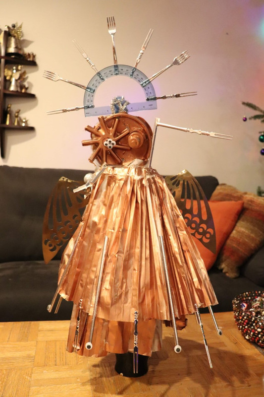 A long, long time ago, we had a family crafting session and made a steam punk angel for the top of the christmas tree. I think -as well as being a nice family activity- it was because the tree was so big it drowned all the angels we had.